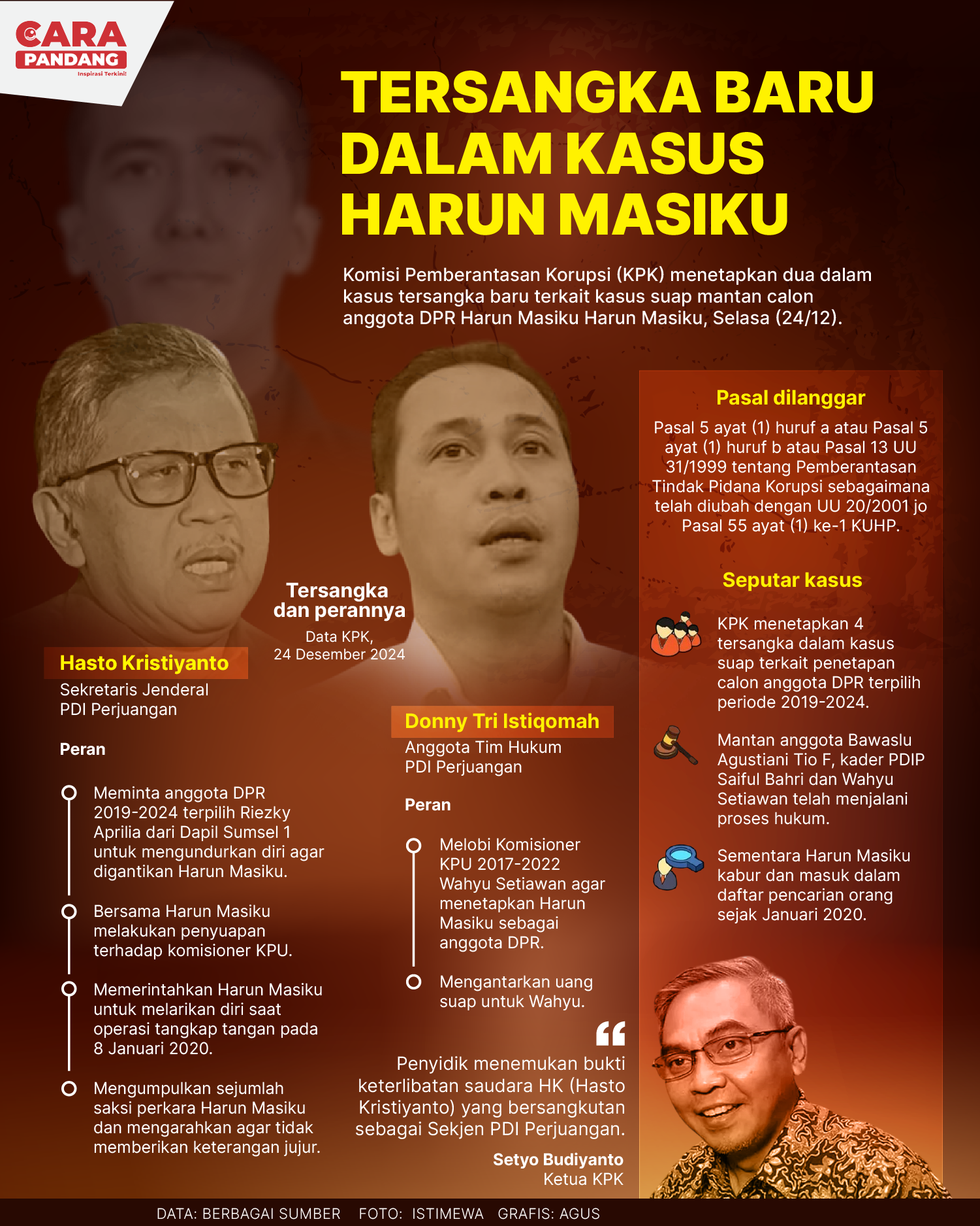 Beranda Infografis Tersangka Baru Kasus Harun Masiku Infografis Tersangka Baru Kasus Harun Masiku Penulis Amira Izzati - 26 Desember 2024 16:26 0 CARAPANDANG - Tags Berita Sebelumnya KPK Cegah Yasonna Laoly ke Luar Negeri Berita Berikutnya Indonesia Dalam Dilema Misi Perdamaian Dunia LEAVE A REPLY Cancel reply Comment: Please enter your comment! Name:* Please enter your name here Email:* You have entered an incorrect email address! Please enter your email address here Website: Save my name, email, and website in this browser for the next time I comment. Berita Teratas Kisah Ajaib Nabi Sulaiman dan Anak yang Berbakti kepada Orang Tua 8 Cara Merawat Kucing Kesayangan Agar Tubuhnya Selalu Sehat Minuman yang Mampu Redakan Batuk yang Menganggu Manfaat Ajaib Bawang Putih Bagi Kesehatan Lima Manfaat Super Makan Pisang Sebelum Tidur yang Jarang Diketahui Berita Terkait Berita Terkait Wajah Baru PP Tunas: Garda Terdepan Perlindungan Anak Indonesia Zoel Rachman - 31 Maret 2026 09:42 MBG 5 Hari Sepekan Masih Wacana Maliq - 30 Maret 2026 11:49 Presiden Ingin Semua Kendaraan Dikonversi ke Listrik Maliq - 30 Maret 2026 11:48 Kewaijiban PSE Terhadap Pengguna Anak Maliq - 30 Maret 2026 11:15