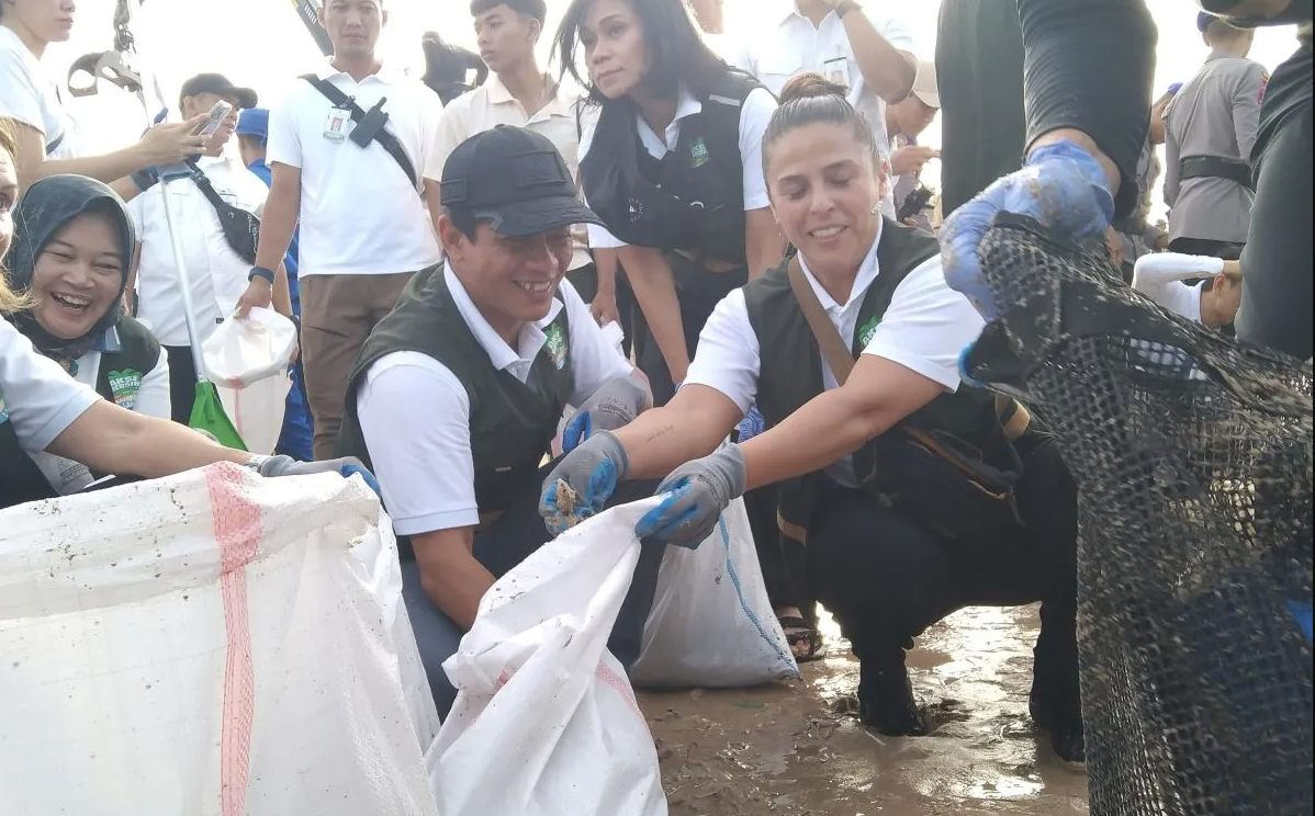 Selain Menteri LH, ada Wakil Menteri Pariwisata Ni Luh Puspa dan Wakil Menteri LH, Diaz Hendropriyono yang ikut memungut sampah plastik di bibir pantai.