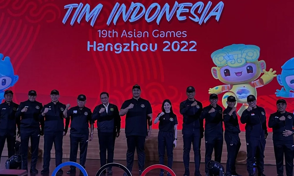 CARAPANDANG - Tim Indonesia untuk Asian Games 2022 Hangzhou resmi dikukuhkan oleh Menteri Pemuda dan Olahraga (Menpora RI) Dito Ariotedjo, Ketua Umum Komite Olimpiade Indonesia (KOI) Raja Sapta Oktohari, serta Chef de Mission (CdM) Indonesia di Asian Games 2022 Hangzhou Basuki Hadimuljono di Jakarta, Selasa.
