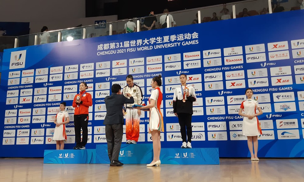 Dalam pertandingan final kelas 52kg putri, atlet wushu Indonesia Tharisa Dea Florentina yang tercatat sebagai mahasiswi Universitas Negeri Semarang (UNNES) merebut emas setelah mengalahkan Ruggieri MBV dari Perancis dengan skor 2-0.