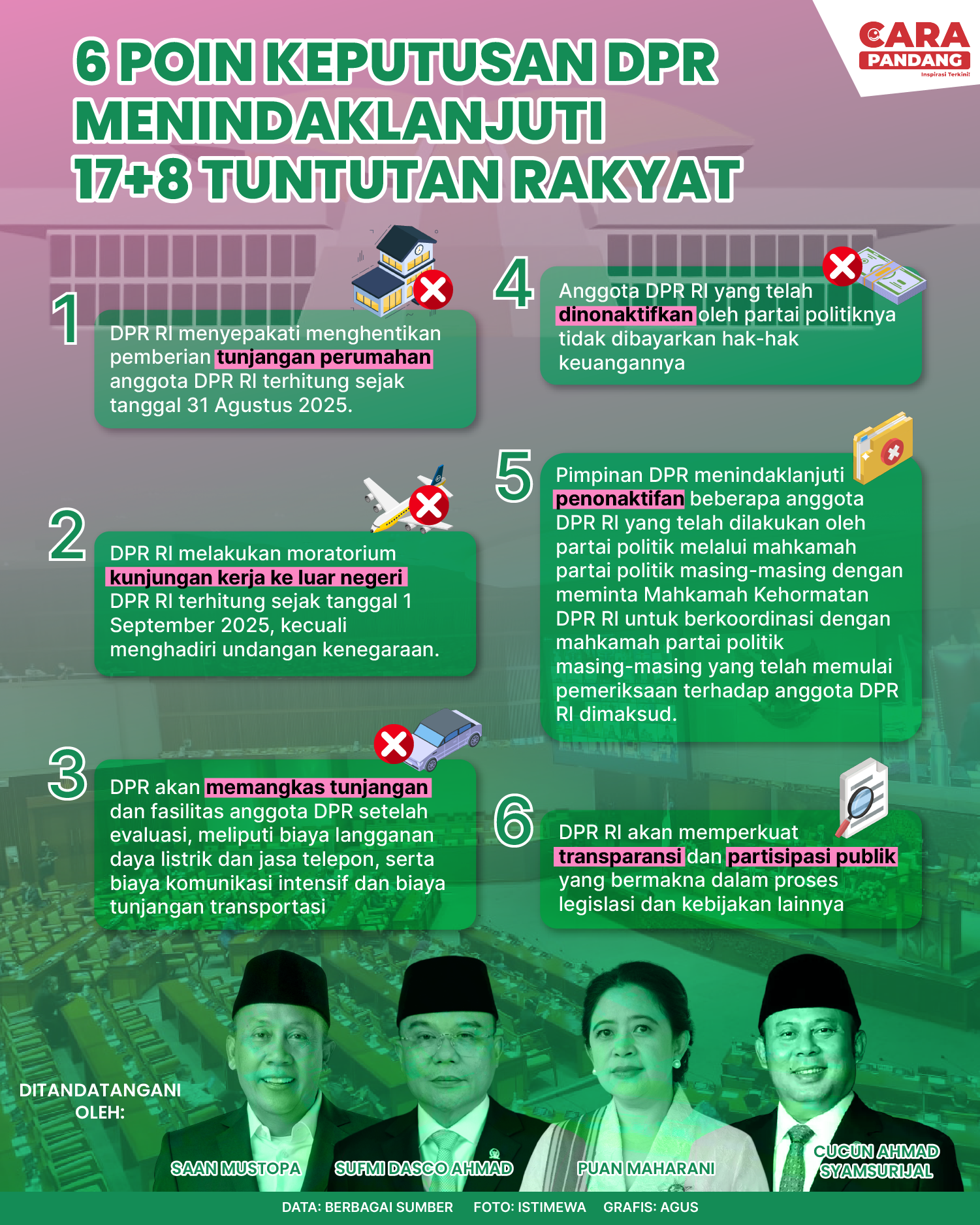 Beranda Infografis Tindaklanjut DPR Soal 17+8 Tuntutan Rakyat Infografis Tindaklanjut DPR Soal 17+8 Tuntutan Rakyat Penulis Amira Izzati - 07 September 2025 17:32 0 Tindaklanjut DPR Soal 17+8 Tuntutan Rakyat Tags Berita Sebelumnya Mantan Panglima TNI Sebut Jokowi Biang Kerusakan Bangsa Berita Berikutnya Indonesia Dalam Dilema Misi Perdamaian Dunia LEAVE A REPLY Cancel reply Comment: Please enter your comment! Name:* Please enter your name here Email:* You have entered an incorrect email address! Please enter your email address here Website: Save my name, email, and website in this browser for the next time I comment. Berita Teratas Kisah Ajaib Nabi Sulaiman dan Anak yang Berbakti kepada Orang Tua 8 Cara Merawat Kucing Kesayangan Agar Tubuhnya Selalu Sehat Minuman yang Mampu Redakan Batuk yang Menganggu Manfaat Ajaib Bawang Putih Bagi Kesehatan 8 Cara Menjaga Kesehatan Gigi dan Mulut yang Efektif Berita Terkait Berita Terkait Wajah Baru PP Tunas: Garda Terdepan Perlindungan Anak Indonesia Zoel Rachman - 31 Maret 2026 09:42 MBG 5 Hari Sepekan Masih Wacana Maliq - 30 Maret 2026 11:49 Presiden Ingin Semua Kendaraan Dikonversi ke Listrik Maliq - 30 Maret 2026 11:48 Kewaijiban PSE Terhadap Pengguna Anak Maliq - 30 Maret 2026 11:15