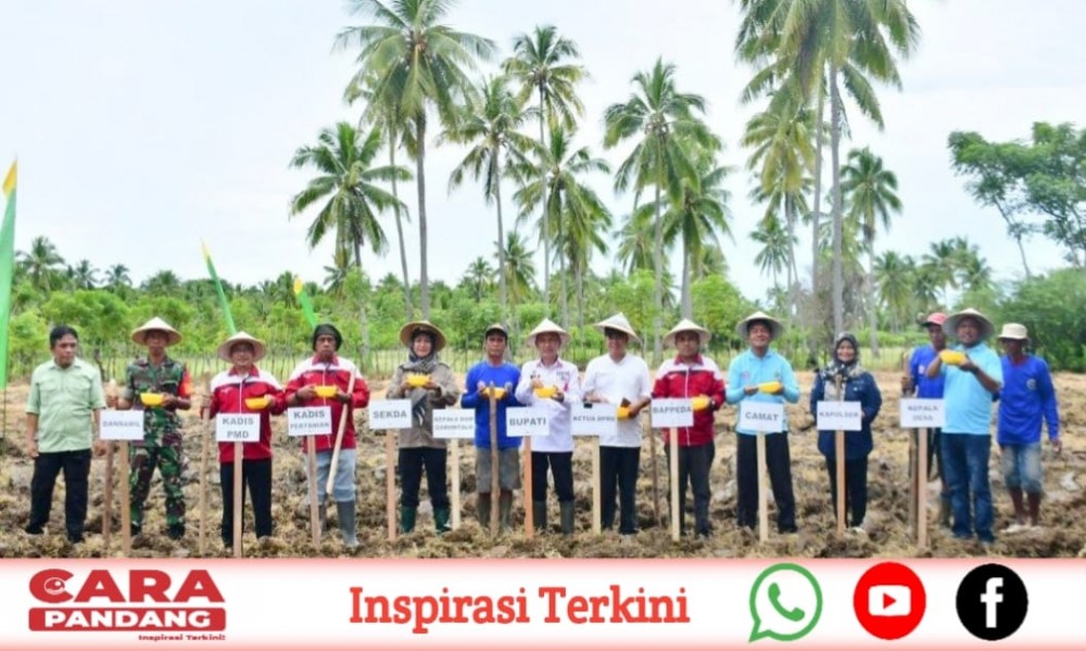 Bupati Pohuwato, Saipul A. Mbuinga didampingi Anggota DPRD Pohuwato, Rizal Pasuma, Kadis Pertanian, Kamri Alwi, dan sejumlah pimpinan OPD, unsur BSIP Gorontalo, dan Muspika Popayato melakukan penanaman padi gogo di areal tanam yang ada di Desa Dambalo, Se