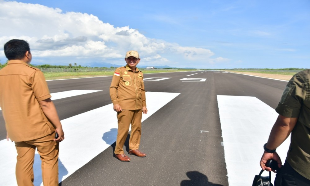 Seperti apa penyelesaian dari bandara itu hingga memasuki tahun 2024, Bupati Pohuwato, Saipul A. Mbuinga meninjau langsung pekerjaan sarana penunjang. Bahkan Bupati Saipul melihat runway yang saat ini sudah siap untuk dilandasi pesawat, Selasa, (09/01/2024).