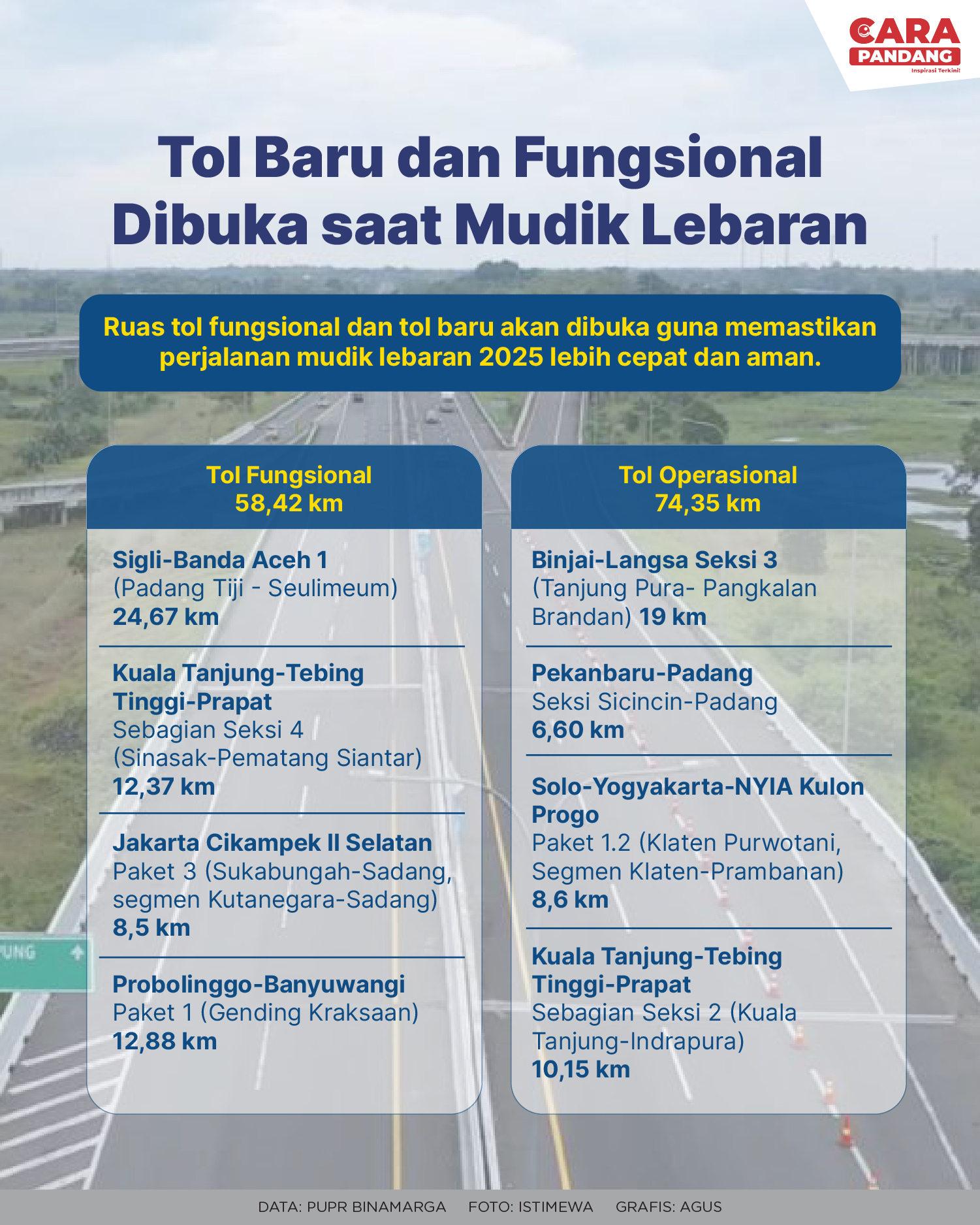 Beranda Infografis Tol Baru dan Fungsional Dibuka Saat Mudik Lebaran Infografis Tol Baru dan Fungsional Dibuka Saat Mudik Lebaran Penulis Amira Izzati - 30 Maret 2025 12:48 0 CARAPANDANG - Tol Baru dan Fungsional Dibuka Saat Mudik Lebaran Tags Berita Sebelumnya Masjid Ramah Musafir Siap Layani Pemudik Berita Berikutnya Indonesia Dalam Dilema Misi Perdamaian Dunia LEAVE A REPLY Cancel reply Comment: Please enter your comment! Name:* Please enter your name here Email:* You have entered an incorrect email address! Please enter your email address here Website: Save my name, email, and website in this browser for the next time I comment. Berita Teratas Kisah Ajaib Nabi Sulaiman dan Anak yang Berbakti kepada Orang Tua 8 Cara Merawat Kucing Kesayangan Agar Tubuhnya Selalu Sehat Minuman yang Mampu Redakan Batuk yang Menganggu Manfaat Ajaib Bawang Putih Bagi Kesehatan 8 Cara Menjaga Kesehatan Gigi dan Mulut yang Efektif Berita Terkait Berita Terkait Wajah Baru PP Tunas: Garda Terdepan Perlindungan Anak Indonesia Zoel Rachman - 31 Maret 2026 09:42 MBG 5 Hari Sepekan Masih Wacana Maliq - 30 Maret 2026 11:49 Presiden Ingin Semua Kendaraan Dikonversi ke Listrik Maliq - 30 Maret 2026 11:48 Kewaijiban PSE Terhadap Pengguna Anak Maliq - 30 Maret 2026 11:15