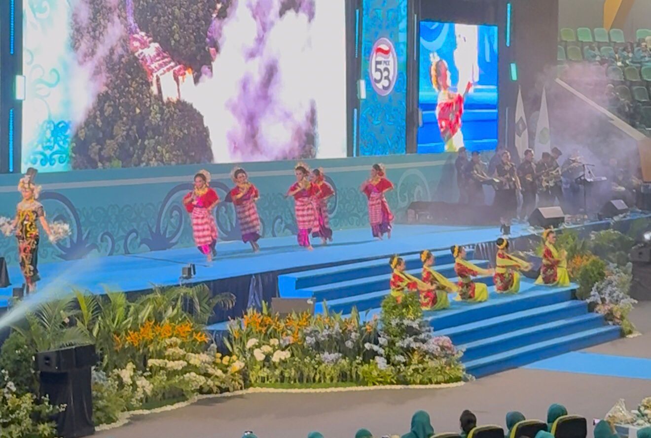 SOLOK, CARAPANDANG - Ketua Tim Penggerak Pemberdayaan dan Kesejahteraan Keluarga (TP-PKK) Kabupaten Solok, Ny. Nia Jon Firman Pandu bersama Sekretaris TP PKK Sri Herlina, menghadiri Rapat Kerja Nasional (Rakernas) X PKK dan puncak peringatan Hari Kesatuan Gerak (HKG) PKK ke- 53, yang digelar di Plenary Hall Convention Center Sempaja Samarinda, Kalimantan Timur, pada Selasa (08/07/2025).