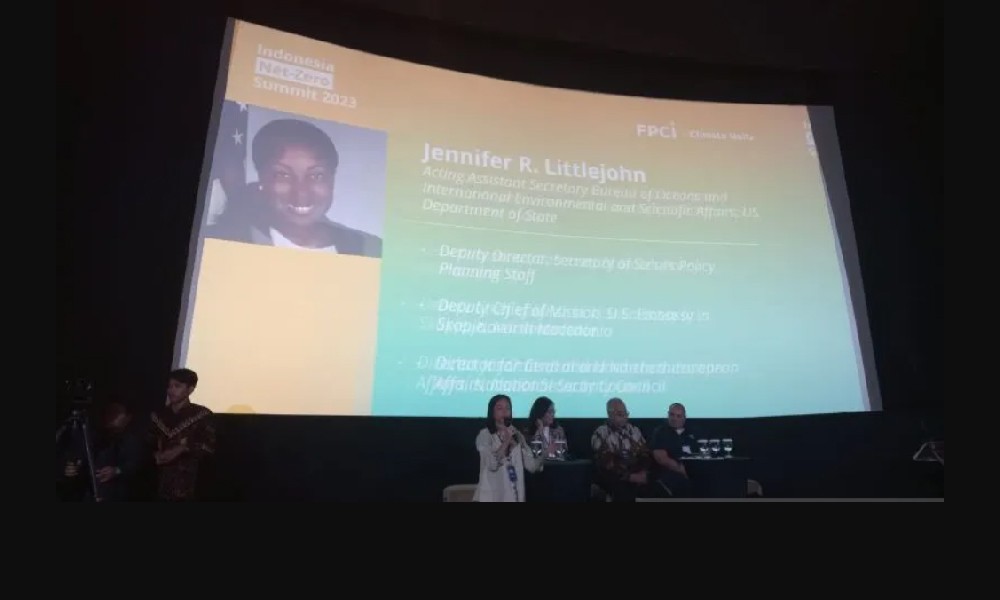 Littlejohn dalam keterangannya di Jakarta, Sabtu. Jennifer R. Littlejohn adalah seorang Pejabat Asisten Sekretaris Biro Kelautan dan Lingkungan Internasional dan Urusan Ilmiah Departemen Luar Negeri AS yang hadir dalam acara Indonesia Net-Zero Summit 2023 (INZS 2023).