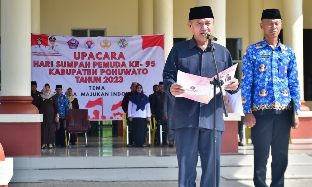 Pemda Pohuwato menggelar upacara peringatan Hari Sumpah Pemuda ke-95 tingkat Kabupaten Pohuwato yang berlangsung di halaman kantor sementara bupati Pohuwato, Senin, (30/10/2023).