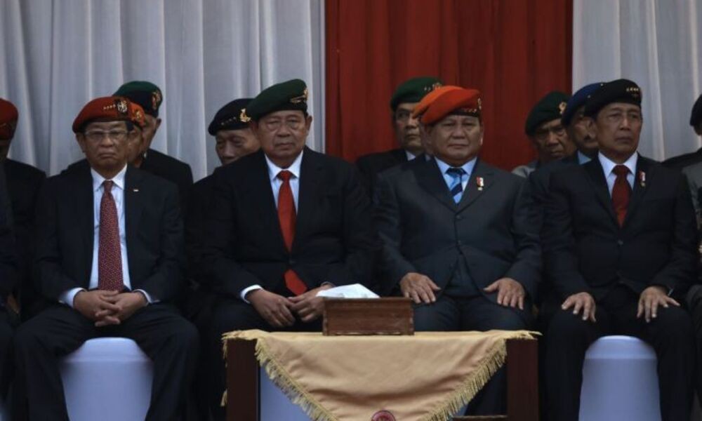 CARAPANDANG - Menteri Pertahanan(Menhan) RI Prabowo Subianto menjadi Inspektur Upacara (Irup) pada Upacara Parade Senja di Lapangan Bela Negara, Kementerian Pertahanan (Kemhan), pada Sabtu (4/5).
