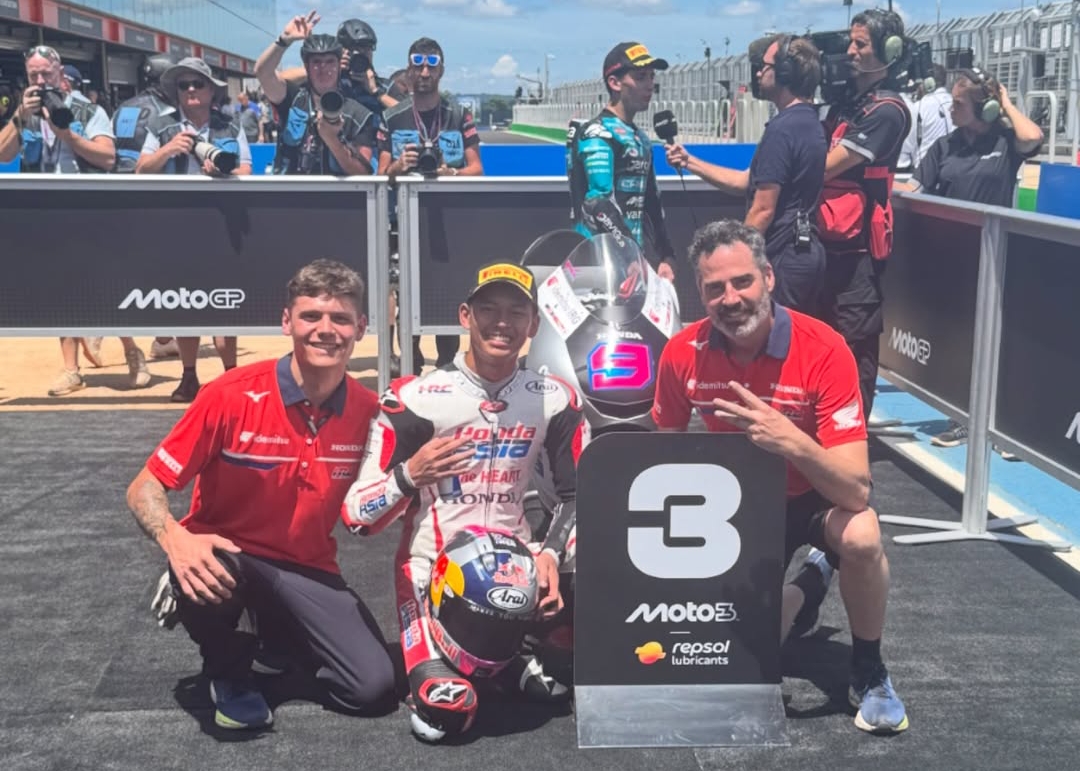 Pebalap asal Gunungkidul, Yogyakarta, yang memperkuat tim Honda Team Asia tersebut menjadi warga negara Indonesia pertama yang berhasil naik podium di ajang Grand Prix.