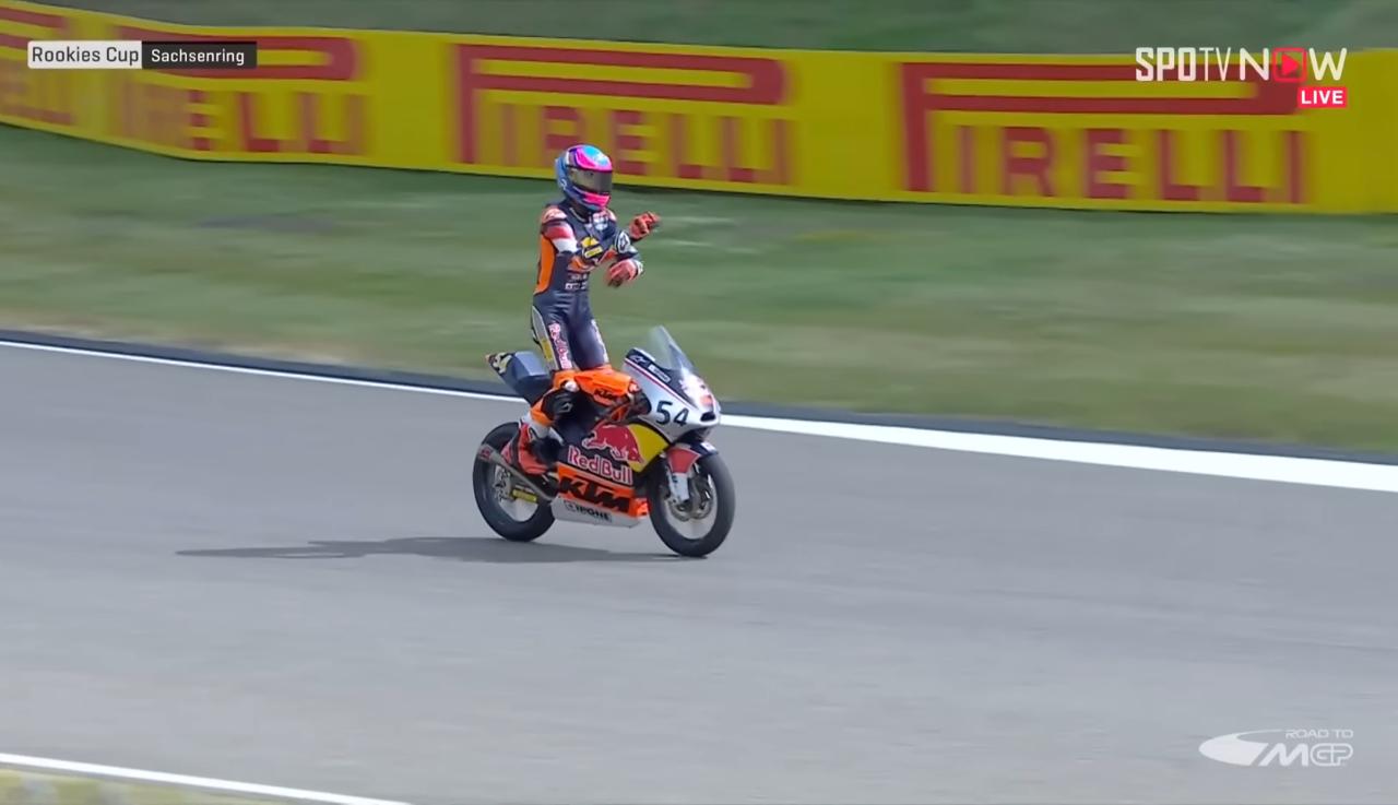 "Kemudian saya unggul dan saya melihat di layar TV besar bahwa beberapa pembalap mengalami kecelakaan dan saya sempat memimpin sedikit di putaran terakhir," ujar Veda.