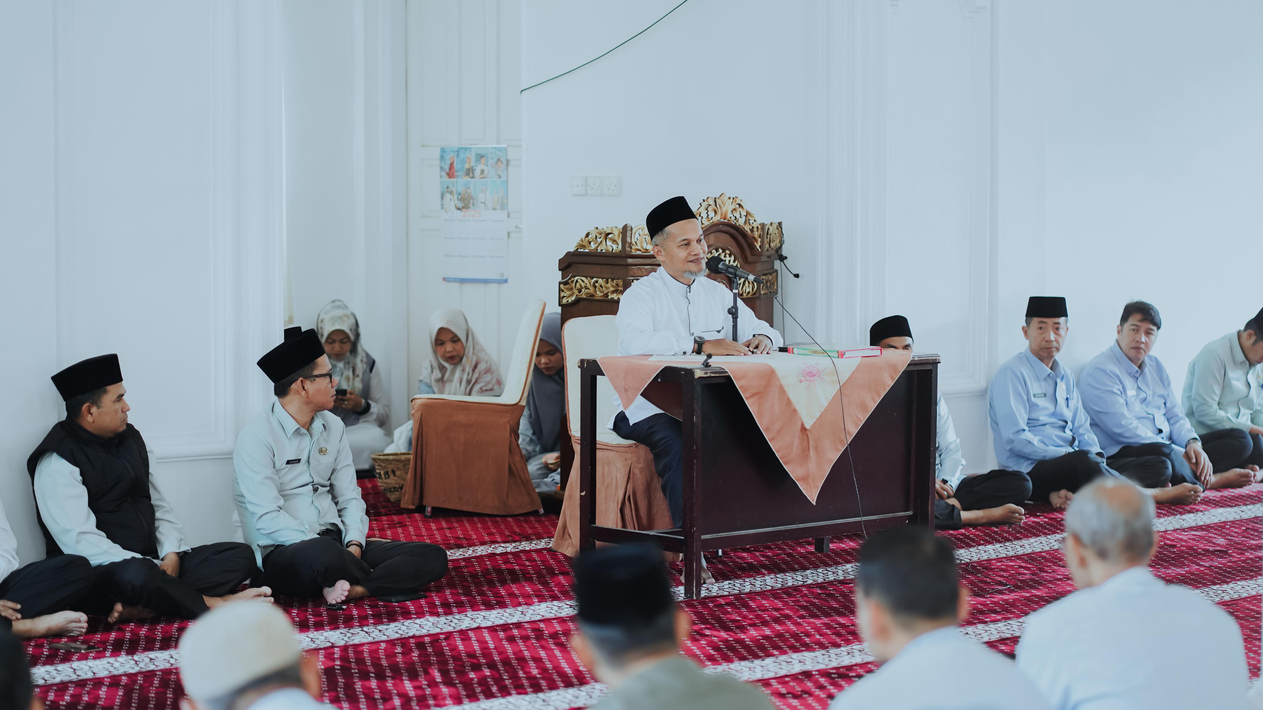 SOLOK, CARAPANDANG - Wakil Bupati Solok Candra mengikuti wirid mingguan di Mushalla Al-Izzah, Komplek Perkantoran Bupati Solok Arosuka, pada Jumat (07/03/2025). Acara ini merupakan agenda rutin yang diselenggarakan di Pemerintah Daerah Kabupaten Solok guna menambah pemahaman tentang keagamaan dan memperkuat ukhuwah Islamiyah.