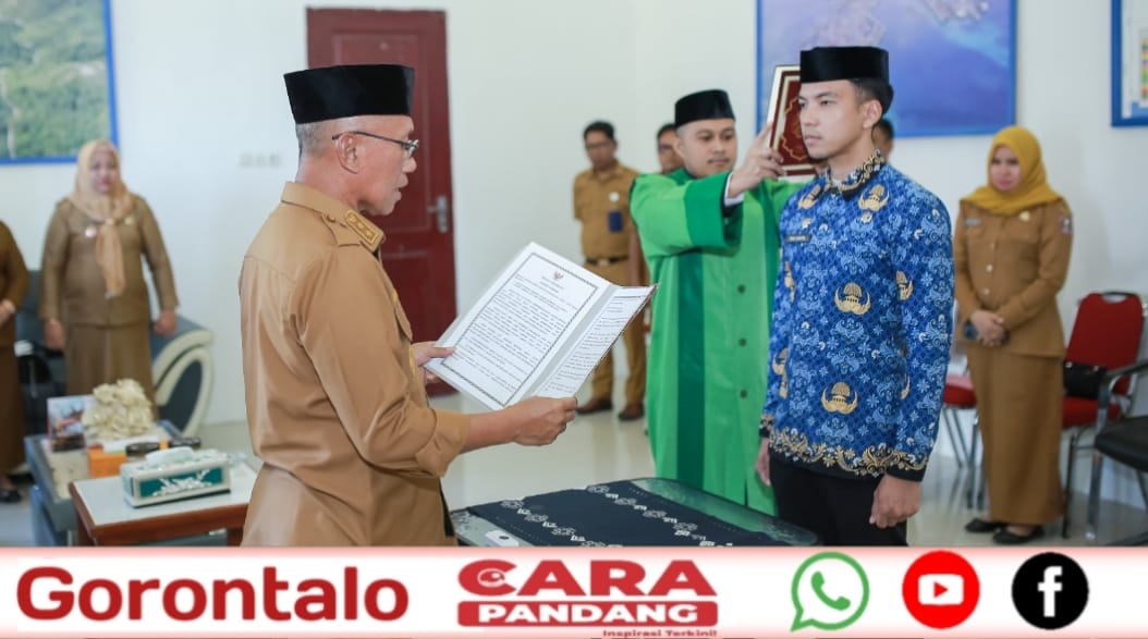 POHUWATO, CARAPANDANG – Pelantikan dan mengambil sumpah satu Calon Pegawai Negeri Sipil (CPNS) menjadi Pegawai Negeri Sipil (PNS) formasi Institut Pemerintahan Dalam Negeri (IPDN) tahun 2024 dilakukan oleh Wakil Bupati Pohuwato, Iwan S. Adam, S.H, di ruang kerja, Selasa (14/10/2025).