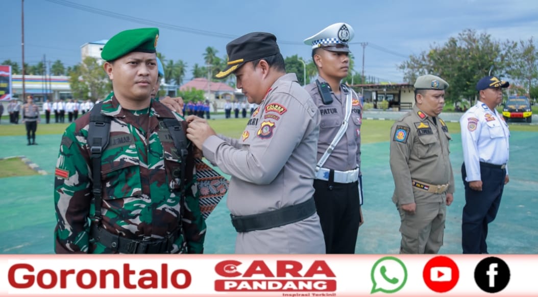 POHUWATO, CARAPANDANG - Wakil Bupati Pohuwato, Iwan Syafruddin Adam, S.H., menghadiri Apel Gelar Pasukan Operasi Ketupat 2025, Kamis (20/03/2025).