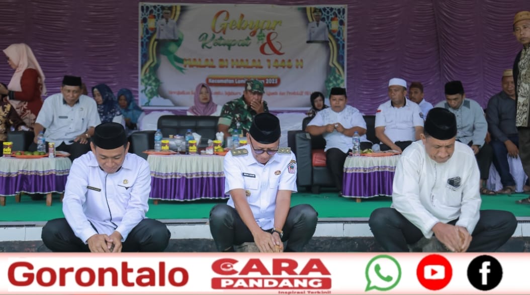 POHUWATO, CARAPANDANG - Wakil Bupati Pohuwato, Iwan S. Adam, menghadiri kegiatan Gebyar Ketupat dan Halalbihalal 1446 Hijriah tingkat Kecamatan Lemito yang berlangsung meriah di Lapangan Olahraga Lemito, Rabu (09/04/2025).
