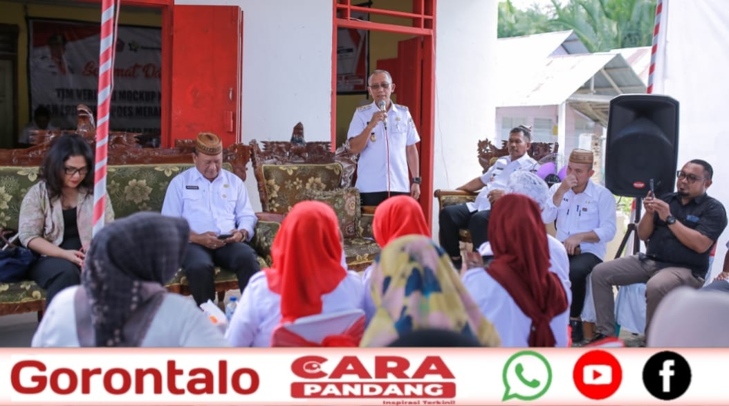 POHUWATO, CARAPANDANG - Pemerintah Kabupaten Pohuwato melalui Wakil Bupati, Iwan S. Adam, menerima kunjungan Tim Verifikasi dan Validasi (Verivali) Mock Up Koperasi Desa Merah Putih (Kopdes MP) dari Kementerian Koordinator Bidang Perekonomian (Kemenko Pangan RI) bersama Tim Pusat Pemberdayaan Desa dan BUMDes (PPDB), Rabu (09/07/2025).