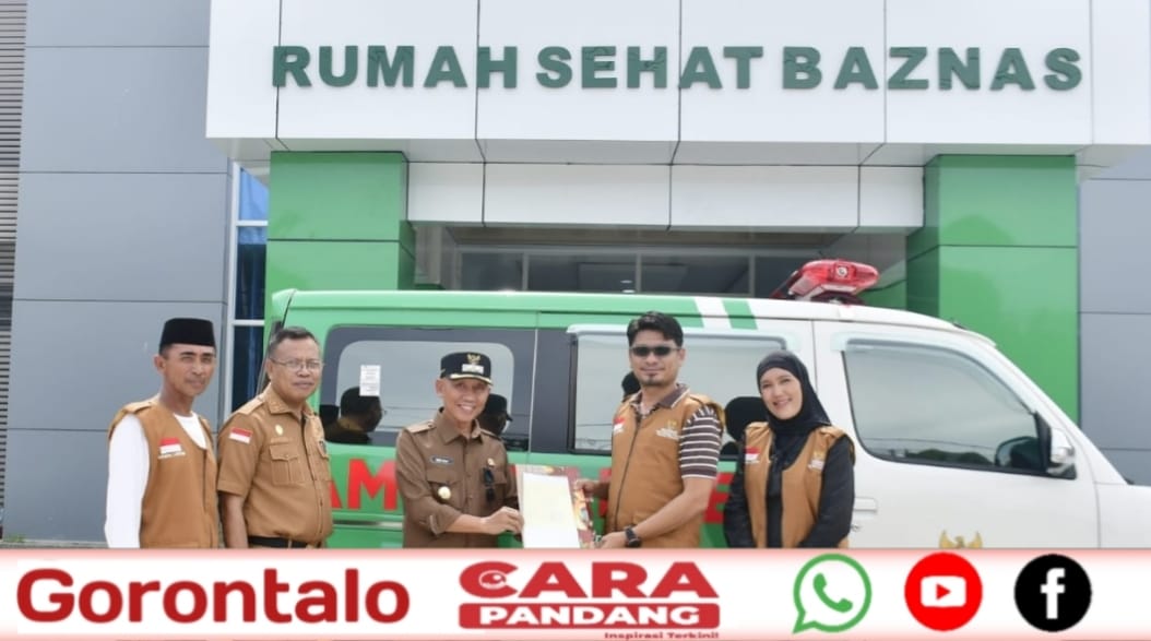 POHUWATO, CARAPANDANG - Wakil Bupati Pohuwato, Iwan S. Adam, menerima satu unit mobil ambulans dari Badan Amil Zakat Nasional (Baznas) Pusat melalui Baznas Pohuwato. Penyerahan dilakukan oleh Wakil Ketua Baznas Pohuwato, Ruzali Hunowu, di halaman Rumah Sehat Baznas Pohuwato pada Selasa, (25/03/2025).