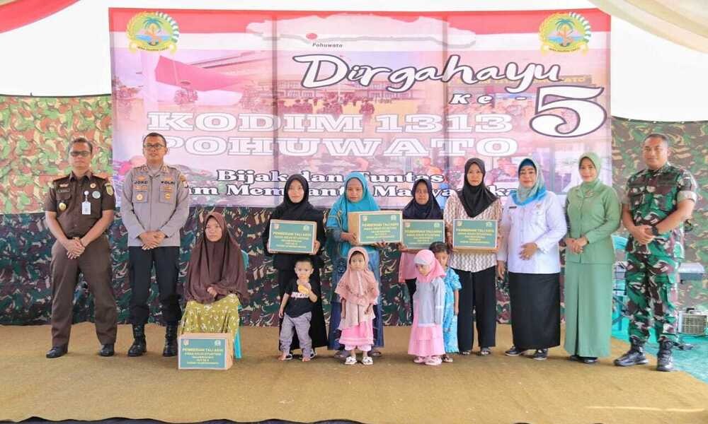 “Kami juga mengucapkan terimakasih yang tak terhingga kepada Bapak Dandim 1313 bersama segenap jajaran yang telah banyak membantu masyarakat khususnya di Kabupaten Pohuwato, yang telah di buktikan pada hari ini, ada sejumlah bantuan-bantuan dalam bidang sosial kemasyarakatan, ini luar biasa", tuturnya.