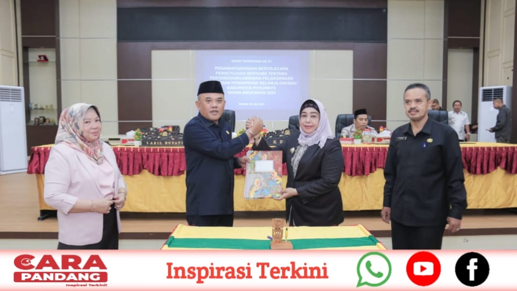 POHUWATO, CARAPANDANG - Wakil Bupati Pohuwato, Suharsi Igirisa, menghadiri Rapat Paripurna dalam rangka penandatanganan berita acara persetujuan bersama atas Rancangan Peraturan Daerah (Ranperda) tentang pertanggungjawaban pelaksanaan Anggaran Pendapatan dan Belanja Daerah (APBD) tahun anggaran 2023, Sabtu, (06/07/2024) di ruang rapat DPRD Pohuwato.
