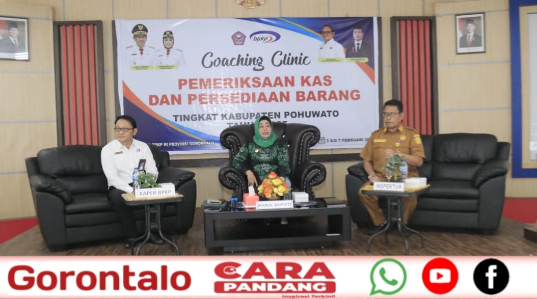 CARAPANDANG - Wakil Bupati Pohuwato, Suharsi Igirisa, secara resmi membuka Coaching Clinic Pemeriksaan Kas dan Persediaan Barang tingkat Kabupaten Pohuwato Tahun 2025, di Aula Perwakilan BPKP Provinsi Gorontalo, Selasa, (04/02/2025).