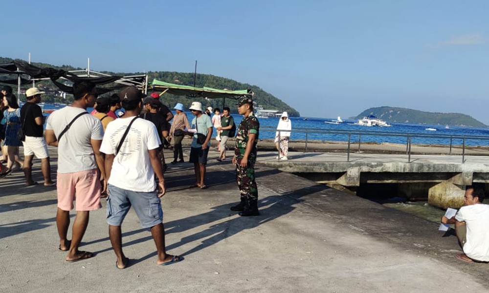 CARAPANDANG - Wadanramil Nusa Penida, Kapten Inf I Gede Putrayadnya mengerahkan beberapa personelnya di kawasan Pelabuhan Nusa Penida.