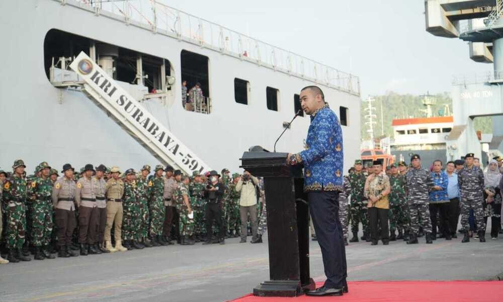 Wakil Gubernur Sumatera Barat, Audy Joinaldy dalam sambutannya dihadapan peserta Latihan Integritas Taruna Wreda Nusantara (Latsitardanus) ke-XLIII di Pelabuhan Teluk Bayur Kota Padang, Rabu sore (17/5/2023).