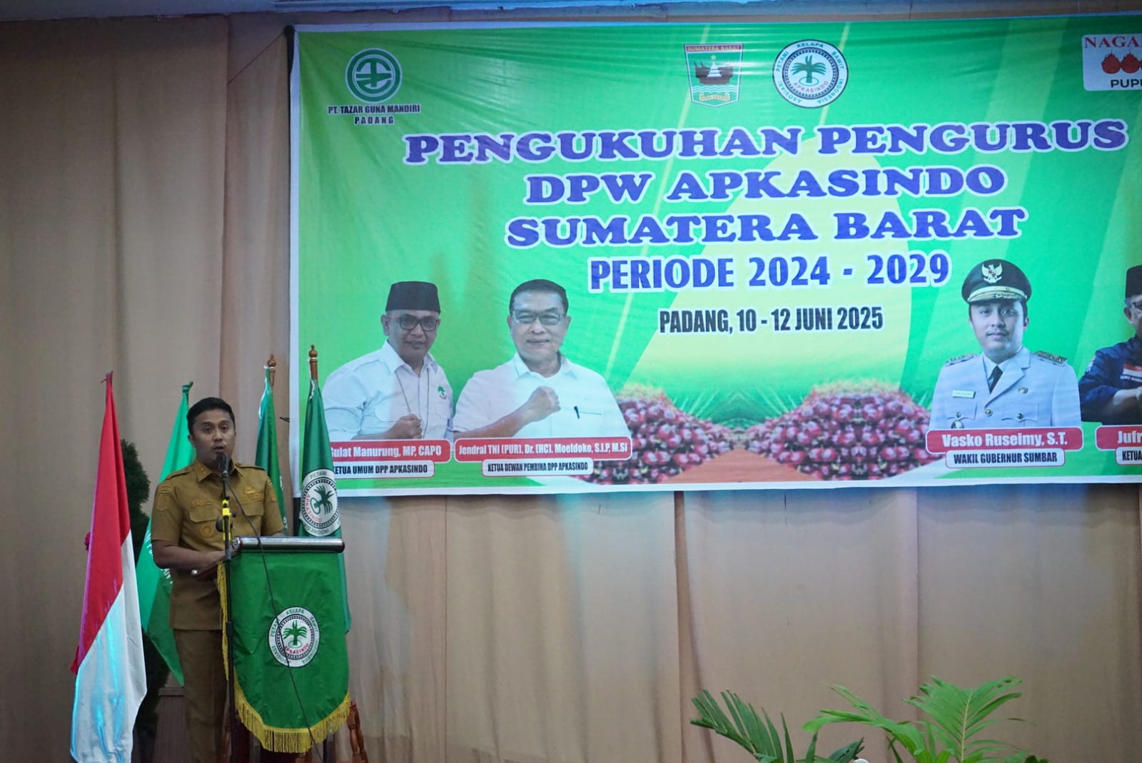 SUMBAR, CARAPANDANG - Wakil Gubernur Sumatera Barat (Wagub Sumbar), Vasko Ruseimy, menegaskan komitmennya untuk terus membela kepentingan petani sawit di Sumbar. Hal itu ia sampaikan saat menghadiri pengukuhan pengurus DPW Asosiasi Petani Kelapa Sawit Indonesia (Apkasindo) periode 2024–2029 di Padang, Selasa (10/6/2025).