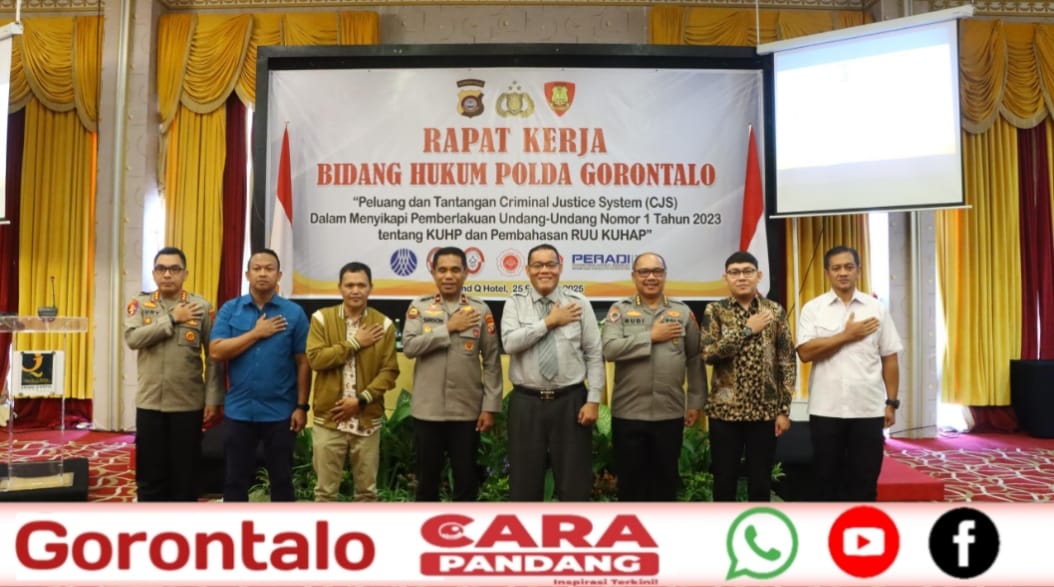 POHUWATO, CARAPANDANG - Wakil Kepala Kepolisian Gorontalo Brigjen Pol Simson menghadiri sekaligus membuka Raker Bidkum T.A 2025 dengan teman “Peluang dan tantangan CJS (Criminal Justice Sistem) atau Sistem Peradilan Pidana dalam menyikapi Pemberlakuan UU Nomor 1 Tahun 2023, serta Pembahasan RUU KUHAP” bertempat di Hotel Grand Q. Selasa (25/02)
