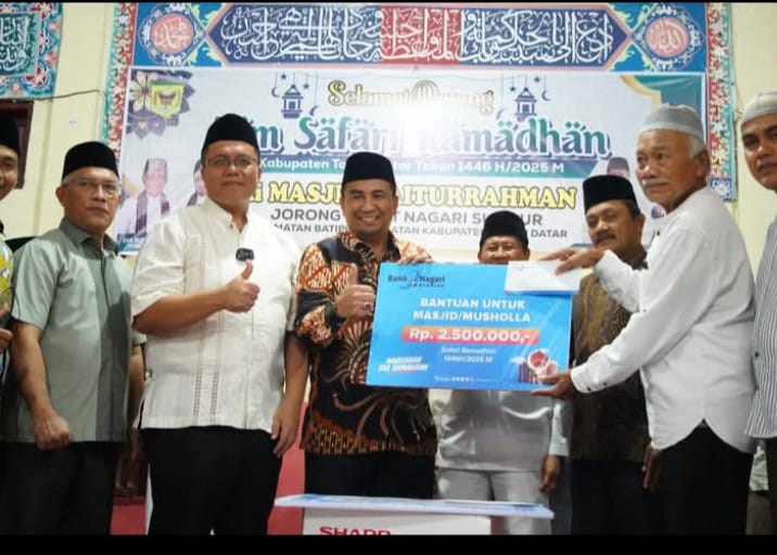 BATUSANGKAR, CARAPANDANG - Dalam suasana Bulan Suci Ramadhan 1446 H, Wakil Bupati Tanah Datar bersama Tim Safari Ramadhan ( TSR ) Reguler 2 sambangi  Masjid Baiturrahman Nagari Sumpur kecamatan Batipuh Selatan, Kamis (06/03/2025).
