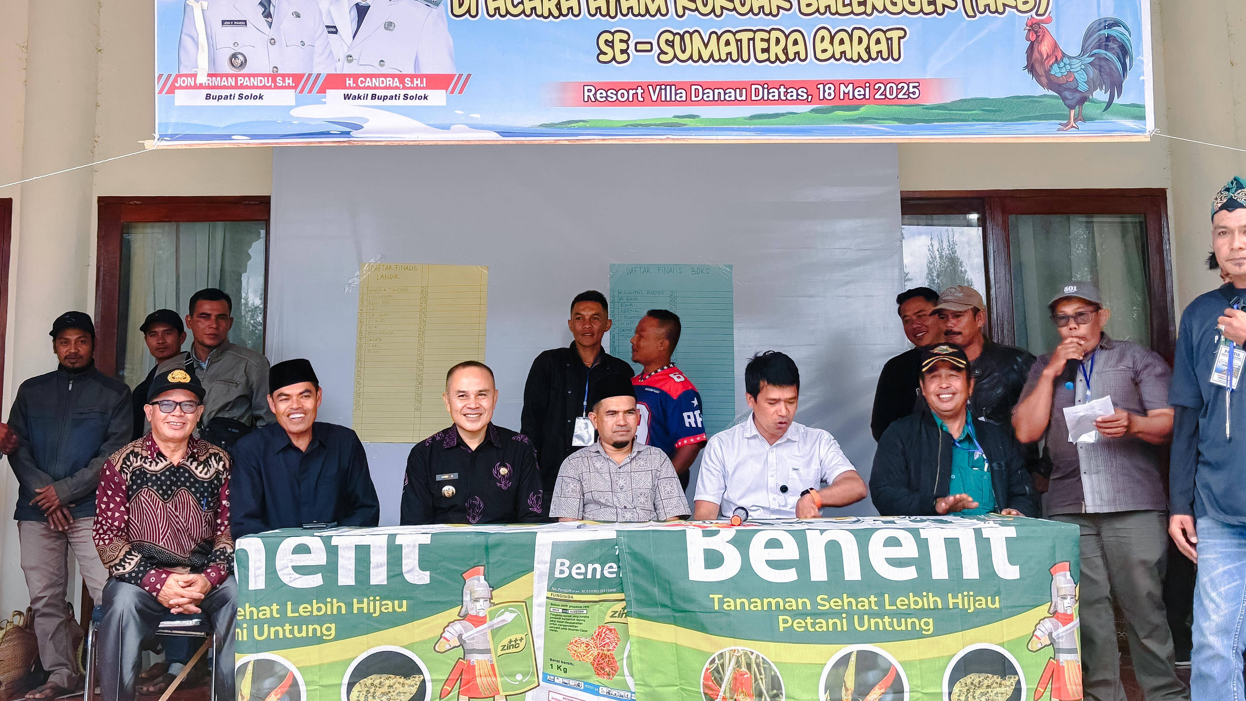SOLOK, CARAPANDANG - Wakil Bupati Solok, Candra membuka secara resmi Kontes Ayam Kukuak Balenggek di Lahan Panjang Resort, Minggu, 18 Mei 2025.
