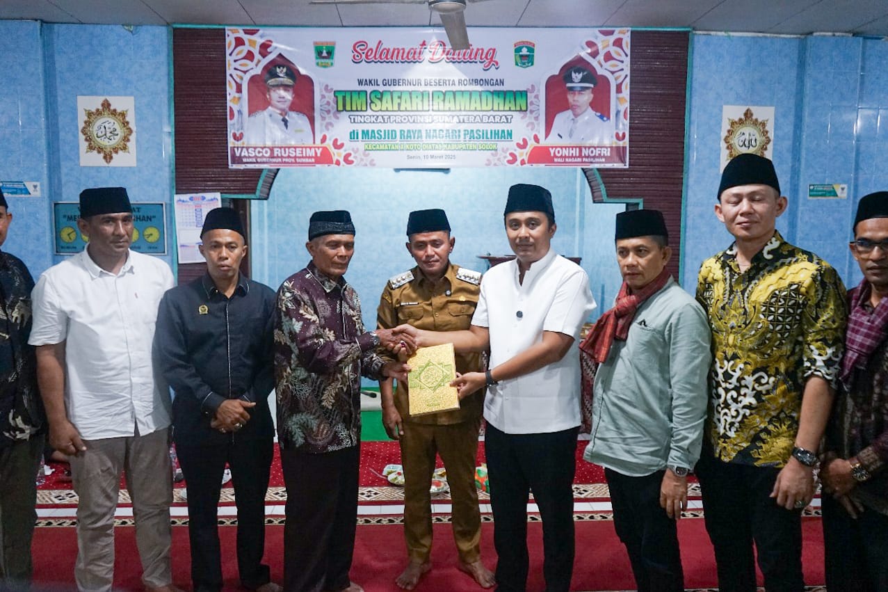 SOLOK, CARAPANDANG - Wakil Gubernur Sumatera Barat, Vasco Ruseimi, bersama Tim Safari Ramadhan (TSR) Provinsi Sumbar mengunjungi Masjid Raya Pasilihan, Kecamatan X Koto Diatas. Dalam kunjungan tersebut, Wakil Gubernur menyerahkan bantuan sebesar Rp. 50 juta dan beberapa Al-Qur'an untuk mendukung revitalisasi masjid.