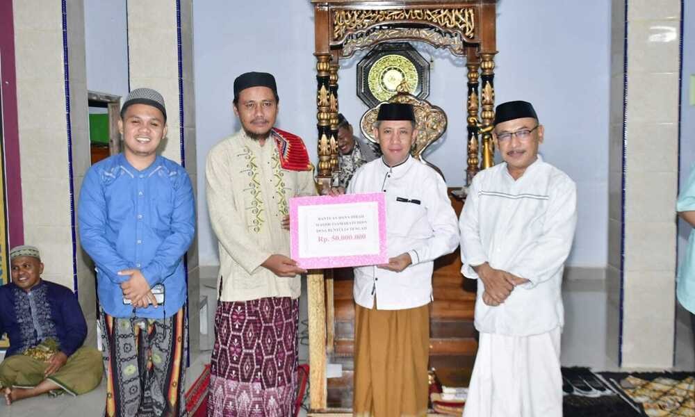 Selanjutnya pada shalat tarawih berjamaah di Masjid Tsamara Tuddin Desa Buntulia Tengah, Asisten Arman Mohamad menyerahkan dana hibah untuk Masjid Tsamara Tuddin yang diterima oleh takmir masjid.