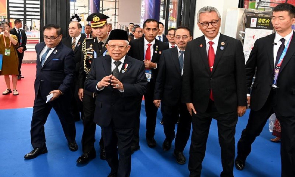 CARAPANDANG - Wakil Presiden (Wapres) Republik Indonesia (RI) KH Ma'ruf Amin menghadiri upacara peresmian dan meninjau paviliun komoditas Indonesia di China-ASEAN Expo (CAEXPO) ke-20 yang digelar di Kota Nanning, Daerah Otonom Etnis Zhuang Guangxi, China selatan.