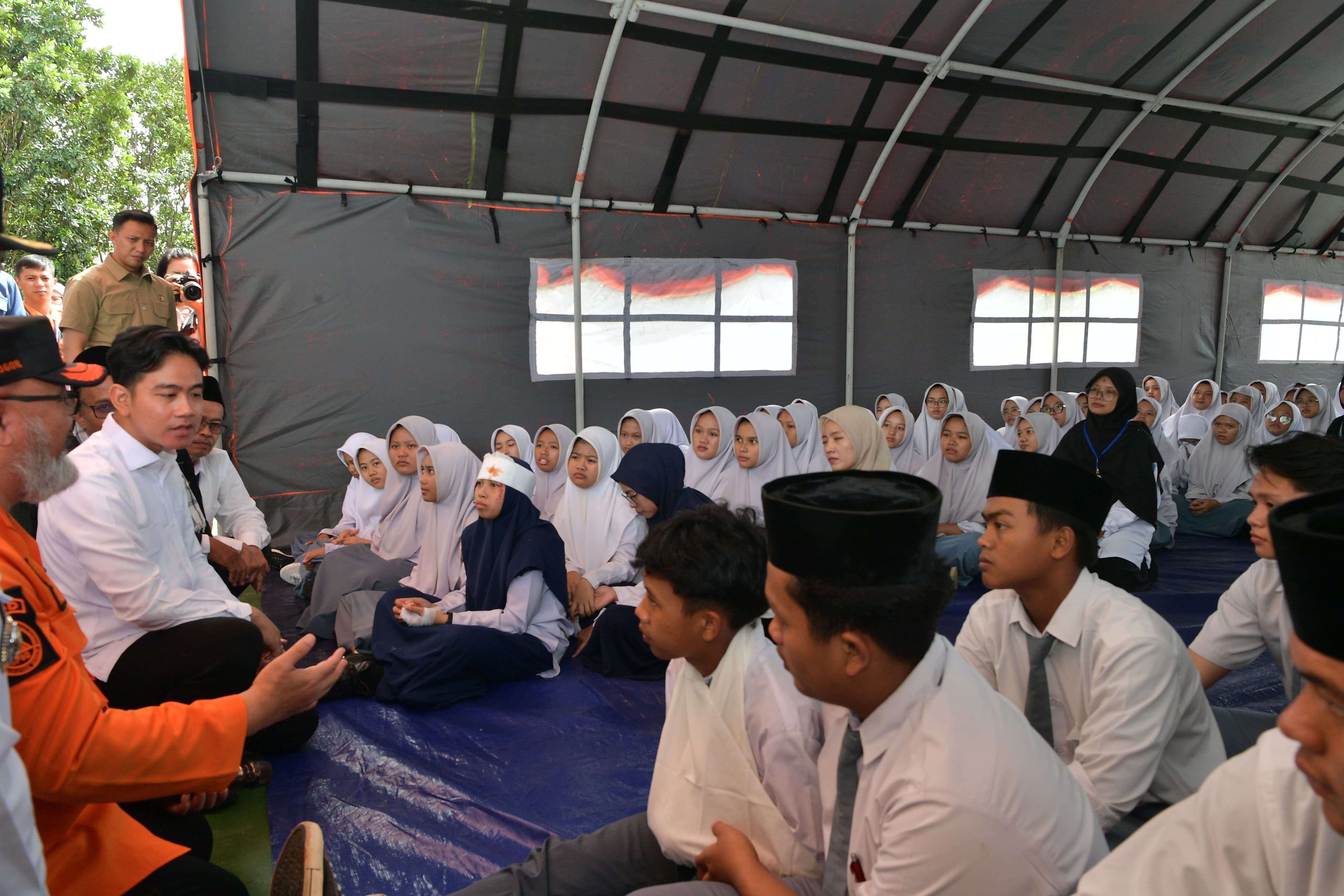CARAPANDANG - Wakil Presiden Gibran Rakabuming mengunjungi Pesantren Muhammadiyah Boarding School (MBS) Ki Bagus Hadikusumo 2, Kabupaten Bogor, Jawa Barat, Rabu (11/12/2024). Kunjungan ini guna memperkuat pendidikan kesiapsiagaan bencana, khususnya bagi generasi muda.