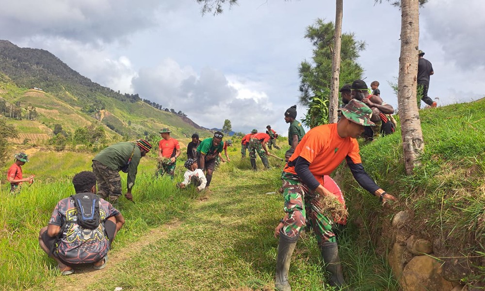 Beranda Papua Warga dan Satgas Pamrahwan Yonif 721/Makkasau Konsisten Jaga Kebersihan Bersama