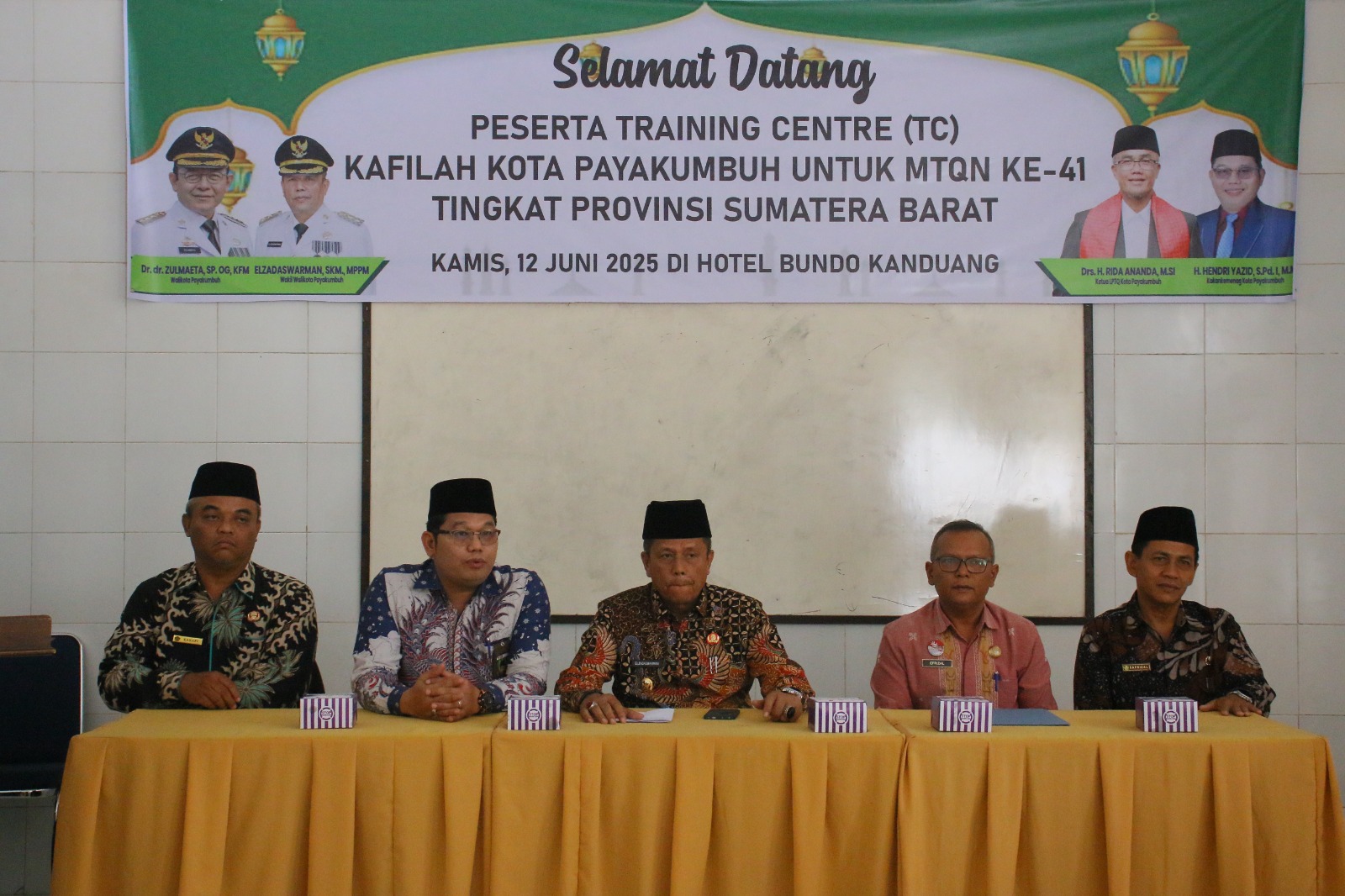 PAYAKUMBUH, CARAPANDANG - Wakil Wali Kota Payakumbuh Elzadaswarman secara resmi membuka Training Center (TC) bagi kafilah yang akan mewakili Kota Payakumbuh dalam ajang Musabaqah Tilawatil Qur’an (MTQ) Nasional ke-41 tingkat Provinsi Sumatera Barat. Acara berlangsung di Hotel Bundo Kanduang, Kamis malam (12/6), sebagai langkah awal menuju MTQ yang akan digelar di Kota Bukittinggi pada November 2025 mendatang.