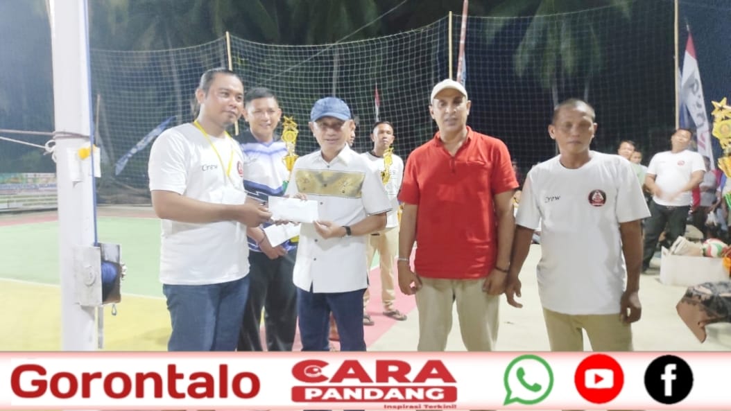 POHUWATO, CARAPANDANG - Wujud kecintaan Saipul A. Mbuinga dalam dunia olahraga di Kabupaten Pohuwato rupanya sudah sangat melekat di hati para pegiat olahraga. Kali ini pria yang terkenal dengan senyuman khasnya itu menghadiri undangan dari panitia turnamen Volleyball Peradah Banuroja Cup.